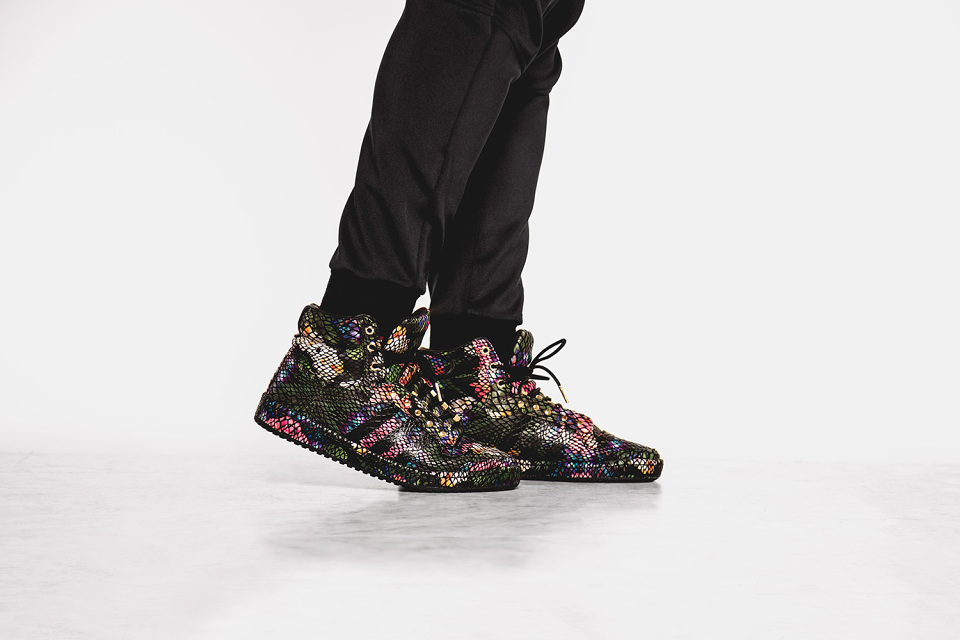• During one of the most exciting athletic events of the year, Three Stripes aka adidas has joined in the fun of dropping a fresh release during All-Star Weekend 2015 in Brooklyn, New York. The event will be colorful and lively similar to adidas recent footwear release. Dubbed ” Floral“ adidas Originals uses their Top Ten design to present this very unique design. Showcasing a textured snakeskin upper, the high-tops have then been draped in floral patterns. No doubt the unique aspect about these Top Tens is the all-over print that extends from upper to tongue to sole. Black laces accompany the colorful kicks that then welcome gold branding throughout. The favored sihlouette recieves a makeover that clashes the dark back color with color patterns cascaded in meticulous detail.