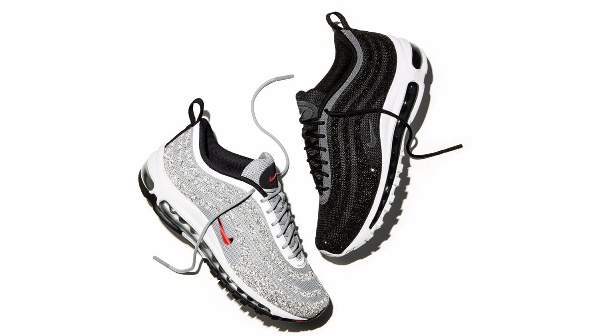 • Following up on a spring delivery of the black colorway, Nike is gearing up to release its latest “Swarovski” Air Max 97 in a familiar scheme. Again, the iconic sneaker here boasts shimmering Swarovski Crystal Fabric swatches throughout the upper.
